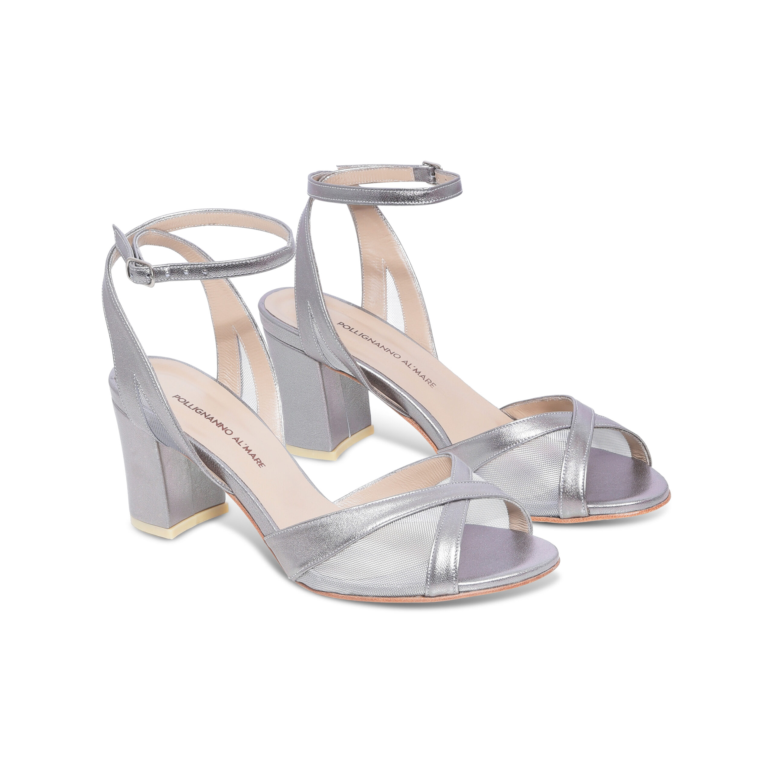 Uma sandália que abraça os seus pés garantindo conforto e com uma tela prata transparente que confere um toque de charme e sensualidade.